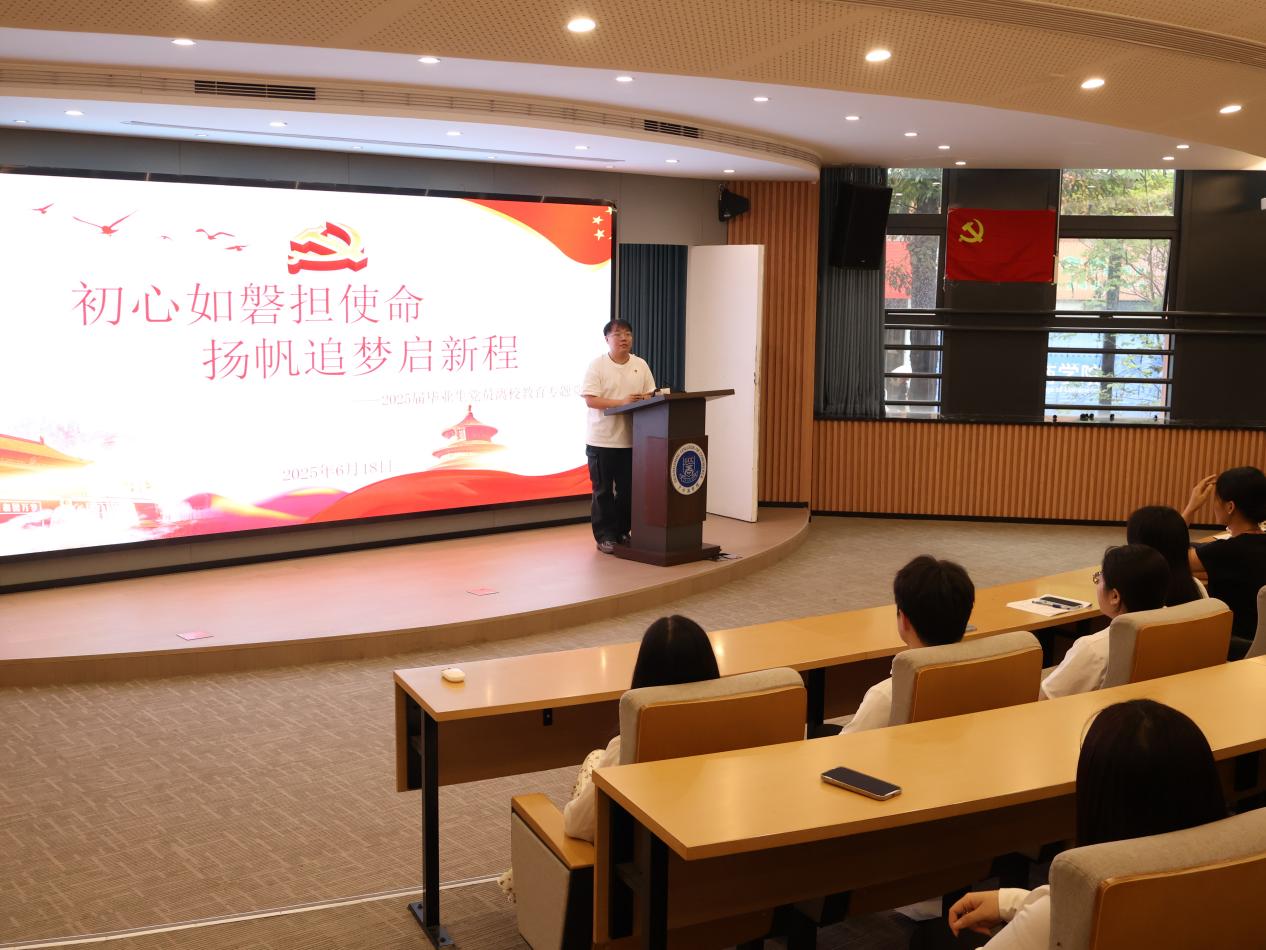 为筑牢党员理想根基,深化党性教育实效,必赢242net官网于6月18日在八教101召开“加强作风建设,提升党性修养,让青春在中国现代建设中书写”为主题的毕业生党员教育会议。会议由必赢242net官网党总支书记徐超主持。徐超书记以“一起走过的日子”开篇,系统梳理2021-2025年发生的时政事件,带领党员们回顾会议精神,回溯初心使命;在“告别校园时-聆听毕业时的嘱托”环节,围绕党员责任担当,向毕业生党员提出殷切期望;最后以“祝你一路顺风”为结语,明确目标要求、激励党员坚定理想信念,强化党性修养,并持续做好总结与反思,以奋进之姿奔赴新征程。