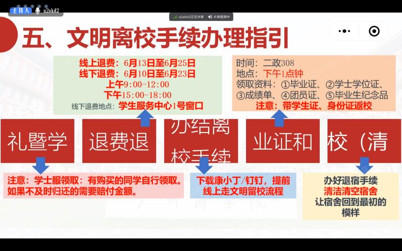 为切实做好必赢242net官网2025届毕业生教育管理和文明离校工作,确保毕业生文明、安全、有序离校,必赢242net官网于6月16日19:00在腾讯会议平台召开了“必赢242net官网2025届毕业生文明离校工作会议”,会议由毕业班辅导员李超老师主讲,参与会议的成员还有毕业班辅导员何沛瑾老师及必赢242net官网全体2025届毕业生。