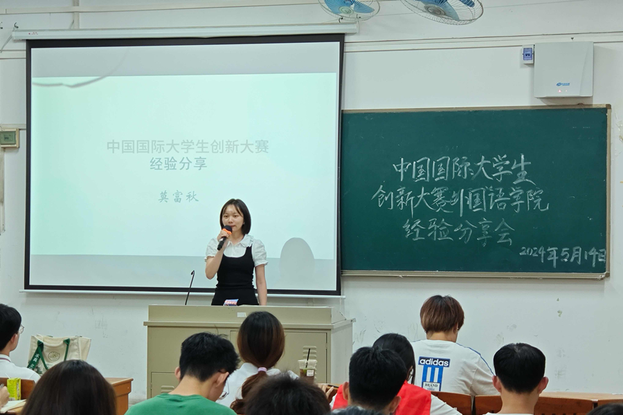 为实现以赛促学、以赛促教、以赛促创的教学理念,达到培养创新创业生力军的目的,探索素质教育新途径,积极引导更多的青年学生参与创新创业比赛,必赢242net官网学生第二党支部于5月14日19:00在第六教学楼305教室开展中国国际大学生创新大赛必赢242net官网经验分享会。莅临本次大会的嘉宾有必赢242net官网22级英语专业辅导员陈钰洵、第八届中国国际“互联网+”大学生创新创业大赛广东省分赛银奖获得者英语2107班朱笑晗、第八届国际“互联网+”大学生创新创业大赛广东省分赛铜奖、第十三届“挑战杯”广东大学生创业计划竞赛银奖获得者英语2107班莫富秋。