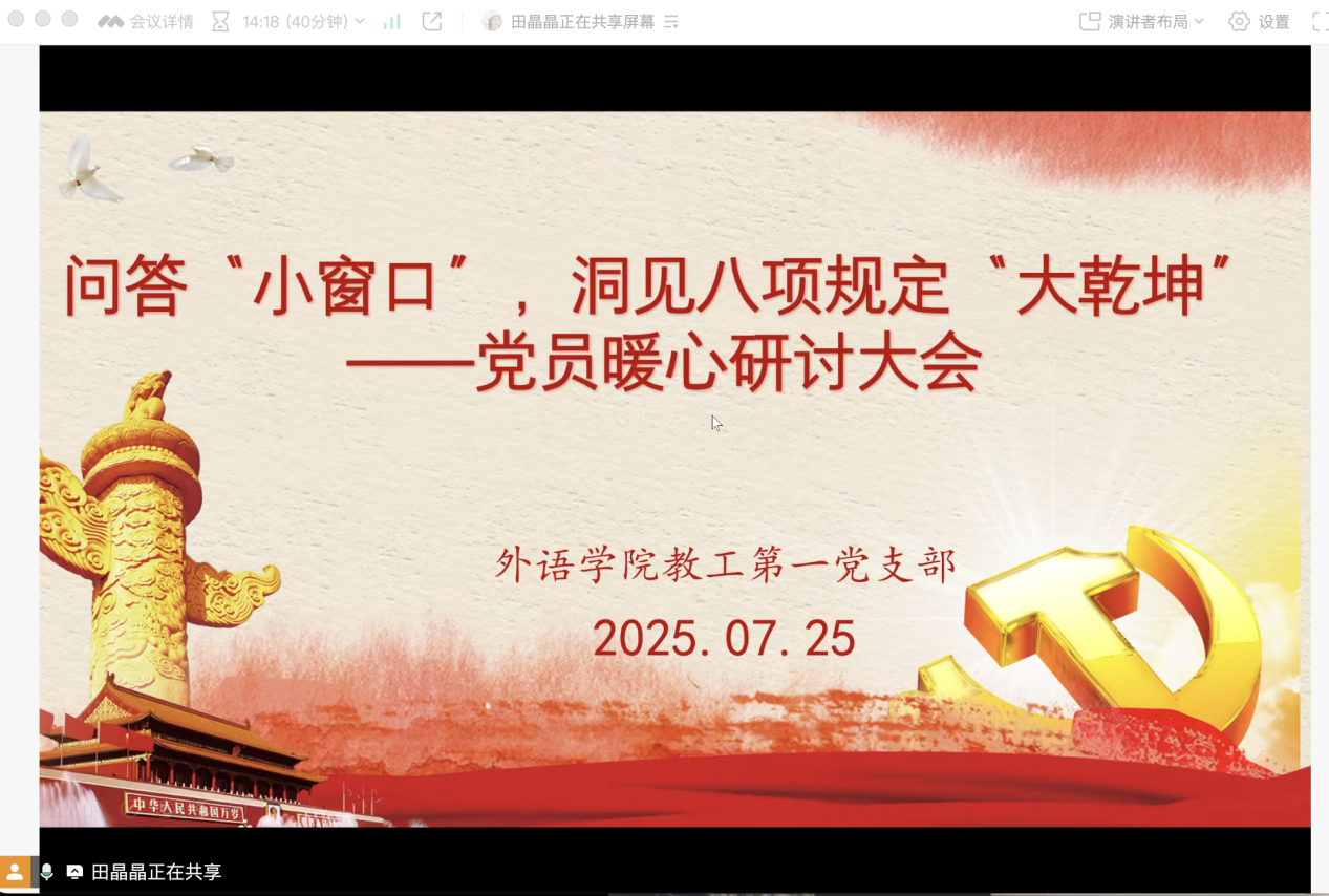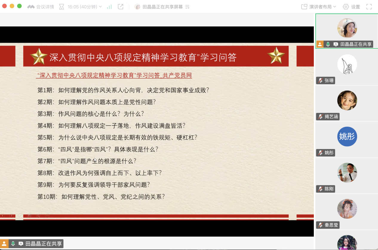 必赢242net官网教工第一党支部开展暑期线上党日活动——“深入贯彻中央八项规定精神学习教育”学习交流会