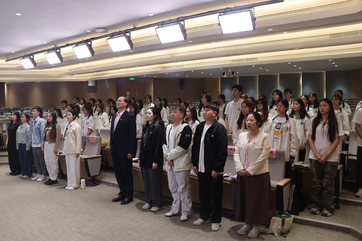 全体参会人员奏唱国歌,并举行了2025-2026学年分党校助理教员聘任仪式。